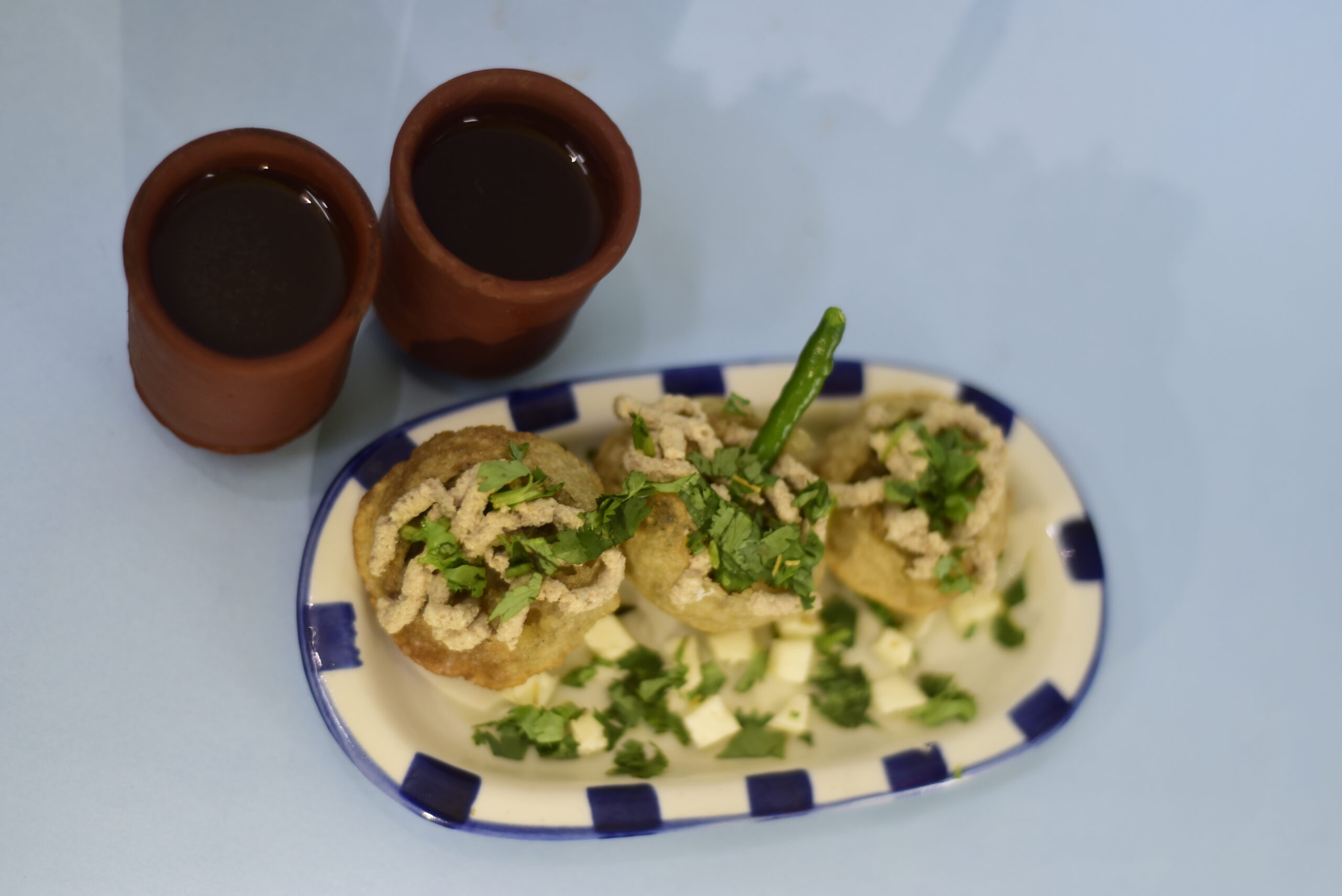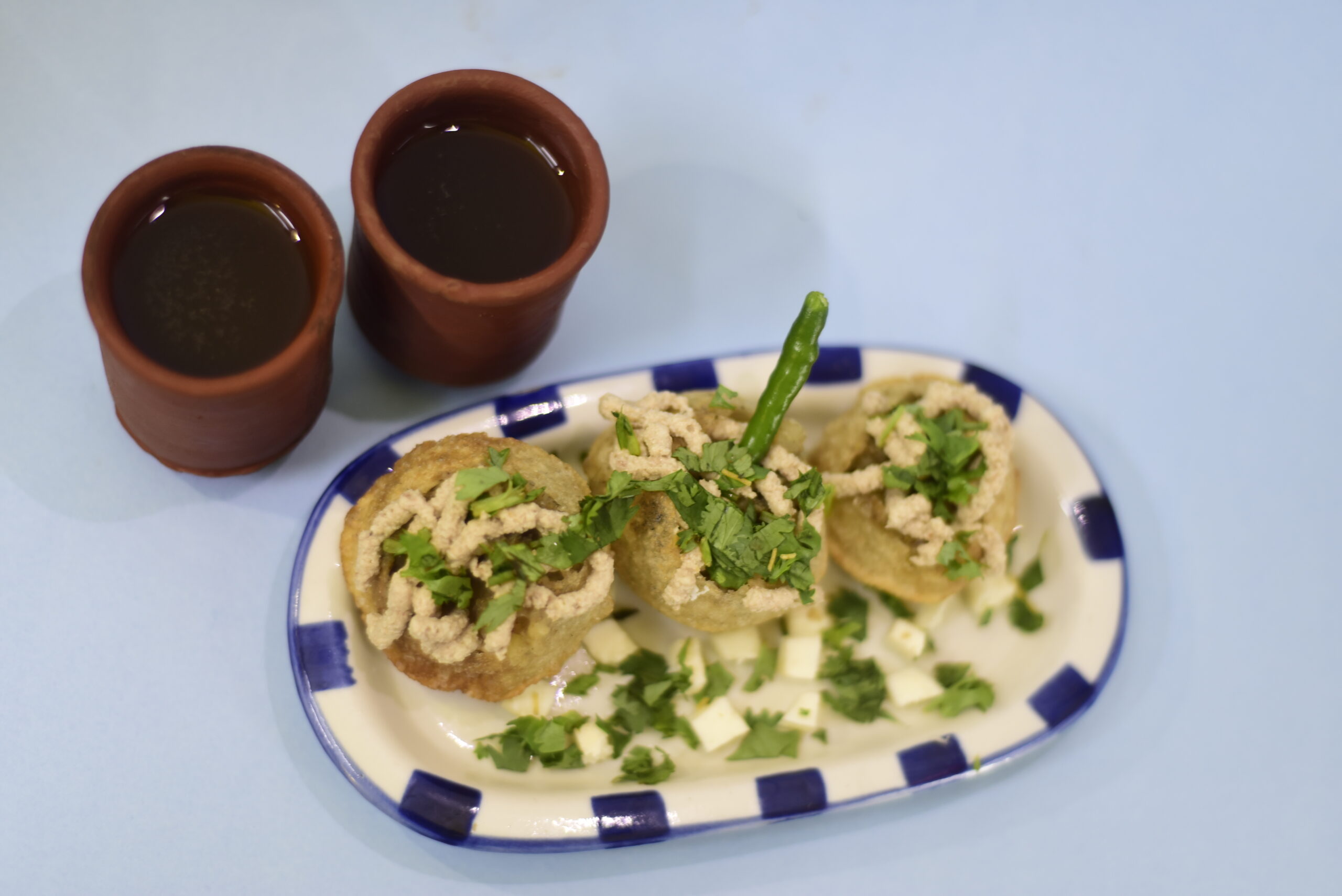 A mixture prepared using vada, masala, green chillies, dahi, meetha chutney and green chutney. taste: sweet and chatpata